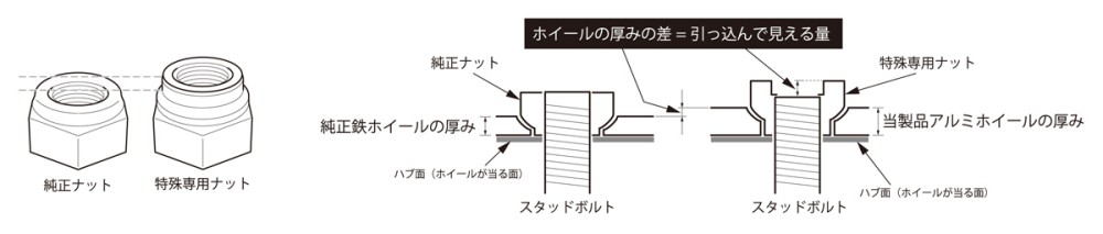 ■LXCP-Wはアルミ鍛造で強度を出していく関係上、純正スチールホイールよりも肉厚が大きくなってしまうため、締結の安全性も犠牲にしないよう「JIS方式」での車両装着に対応した「専用取付けナットセット」も同時に開発。