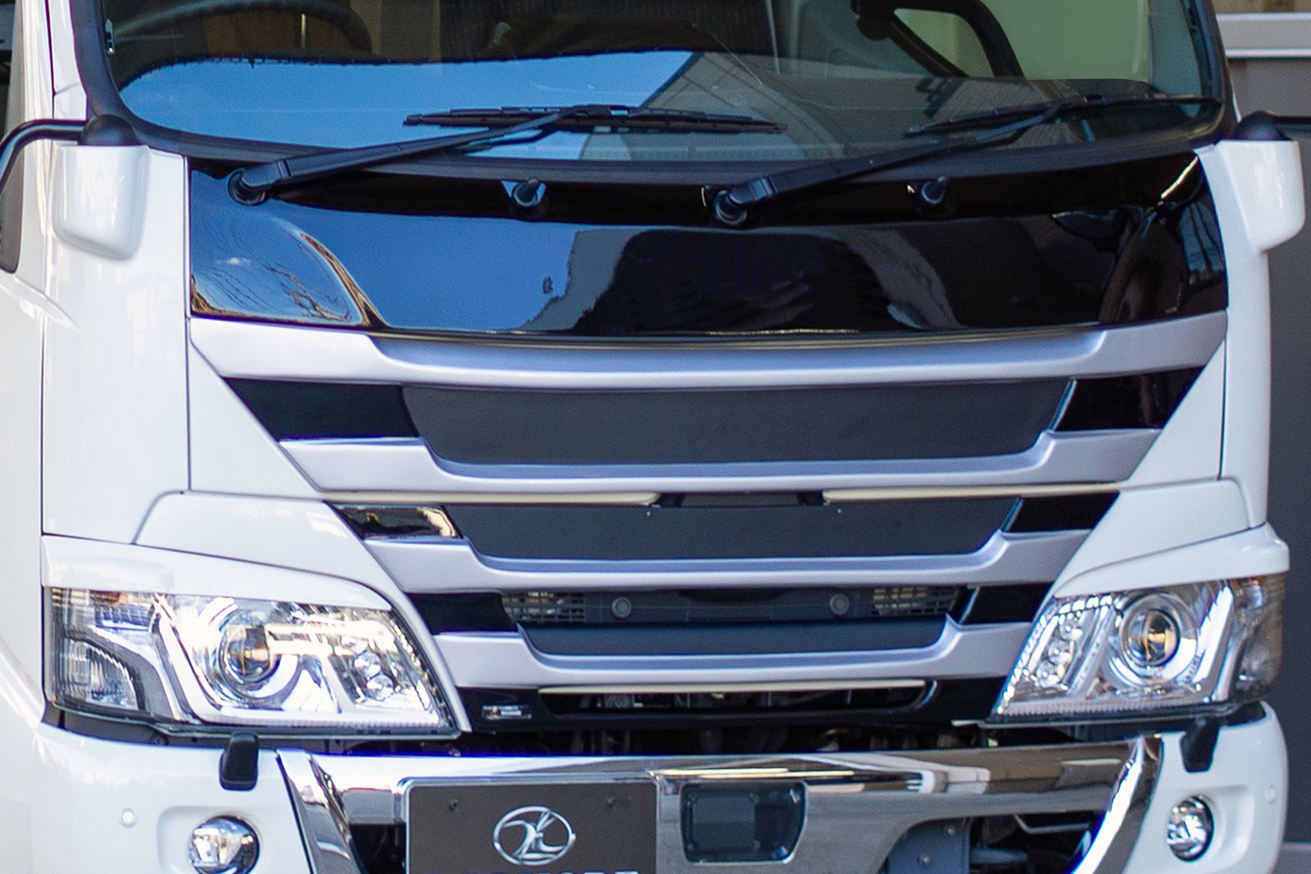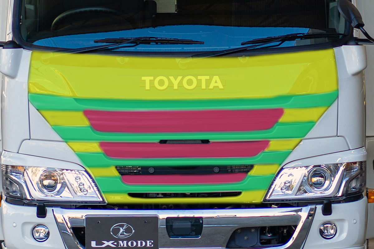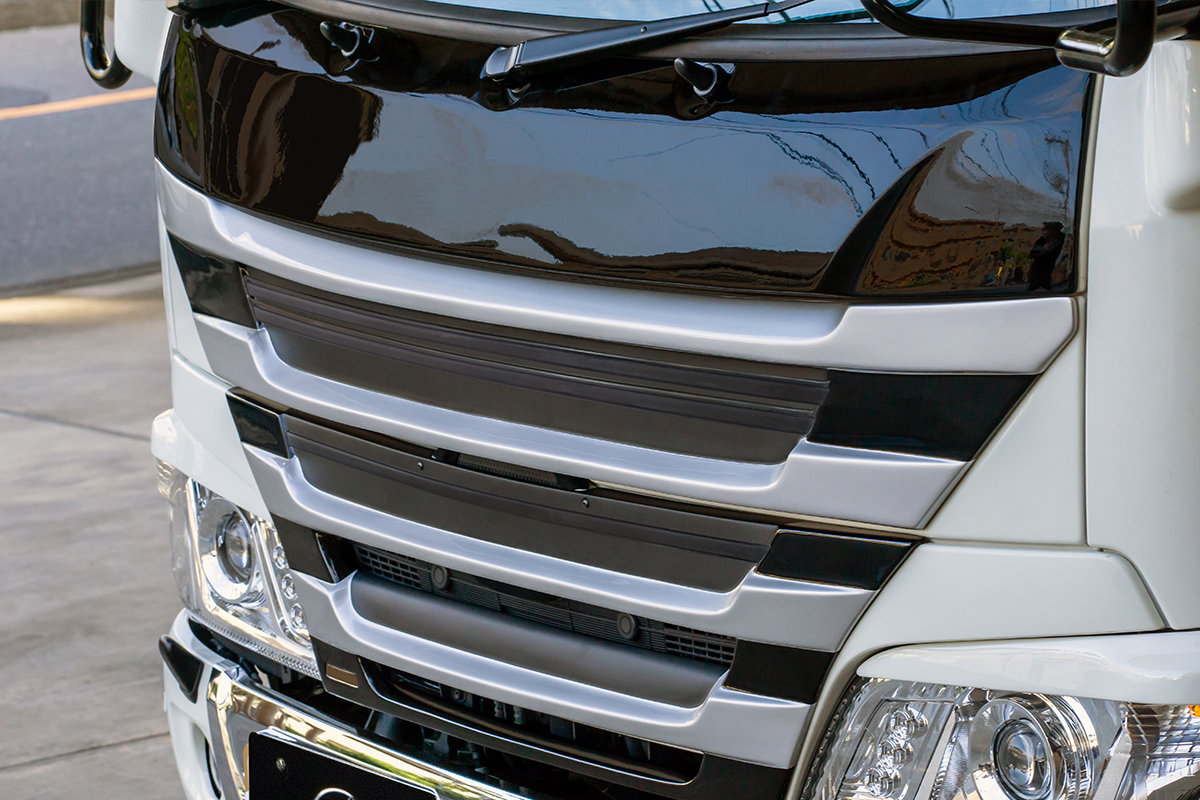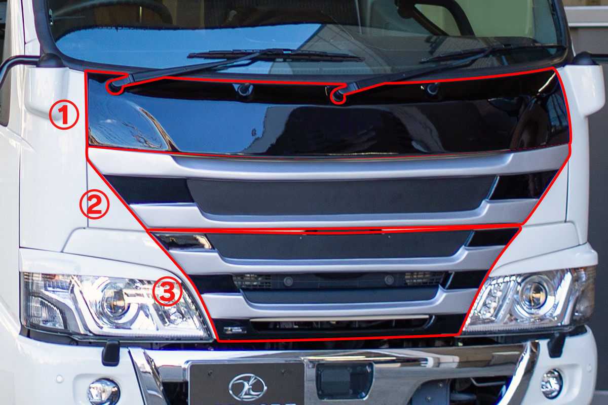 ■フロントフェイスに上から被せて両面テープで貼付け装着することで、迫力あるフェイスを表現。